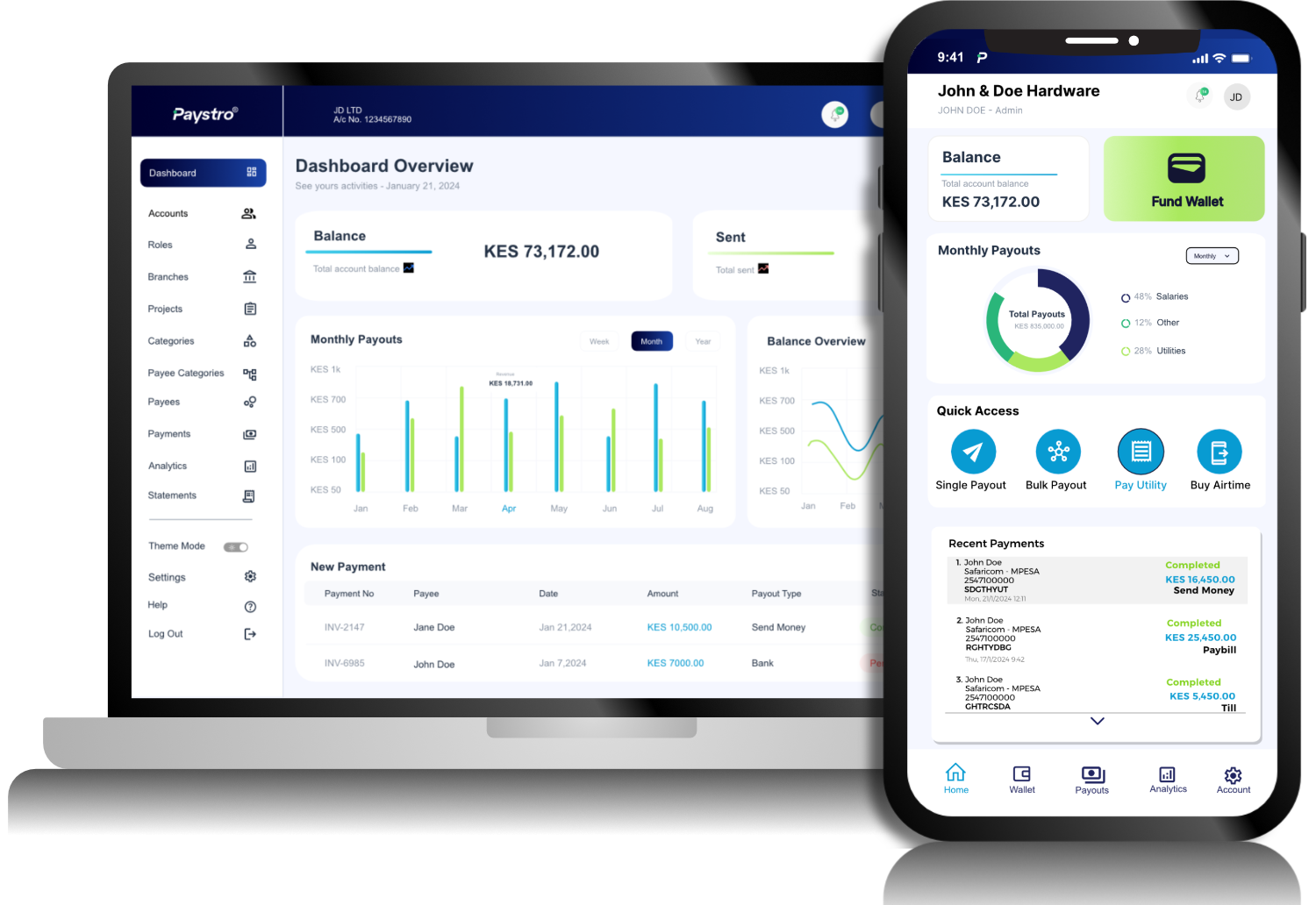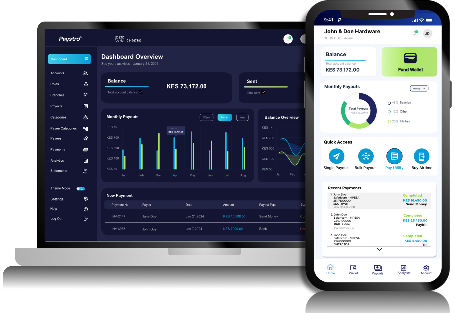 Spend Management tool enabling you to disburse funds to recipients via Send Money, Till, Paybill and Bank account options while maintaining a Single Statement for all your payments.