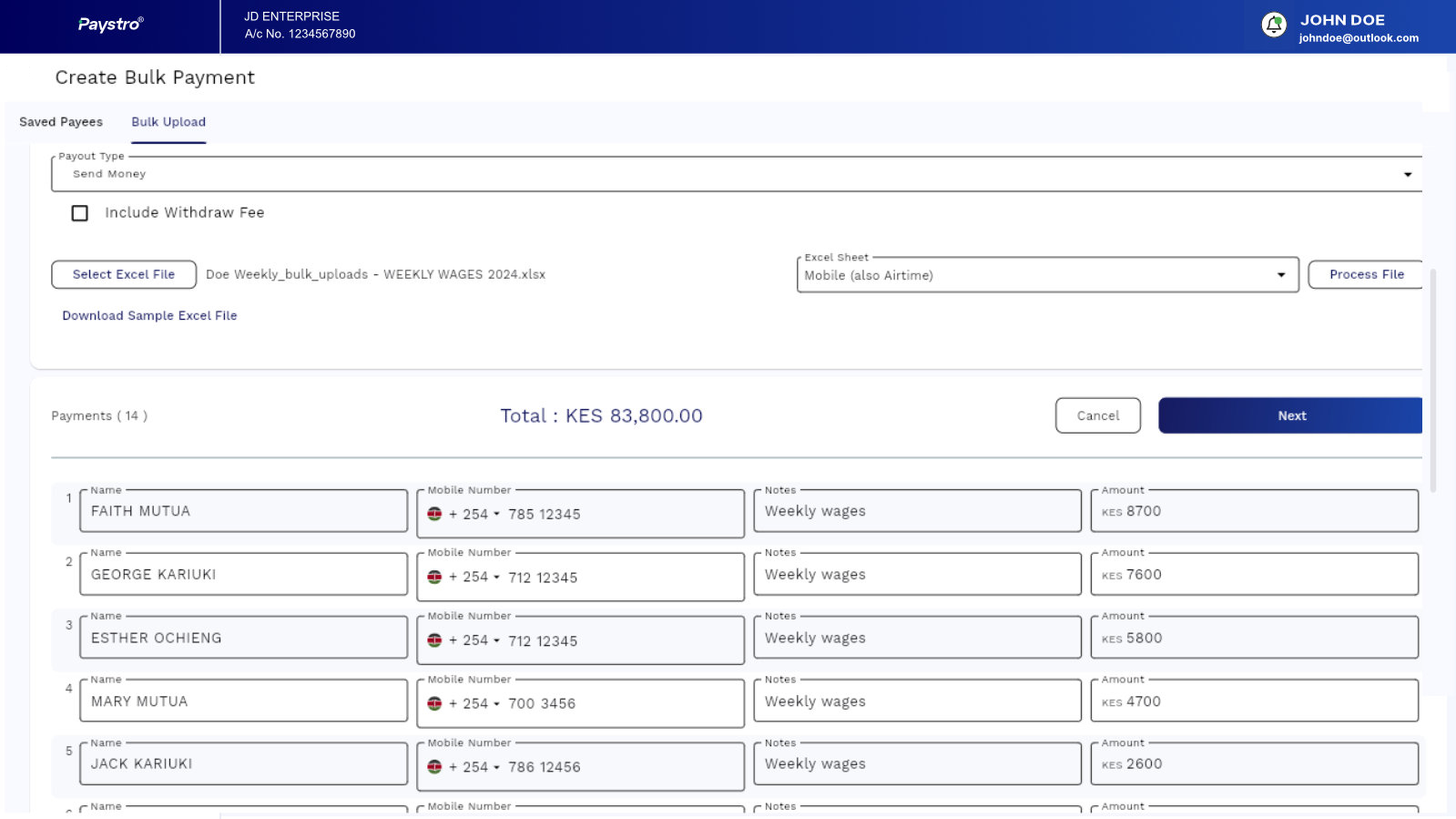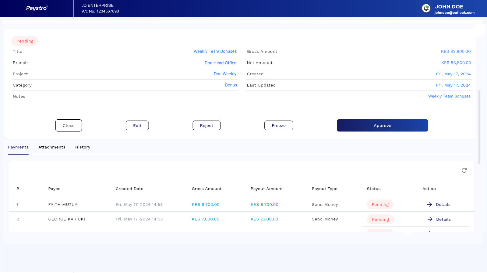 BULK PAYOUT DEMO