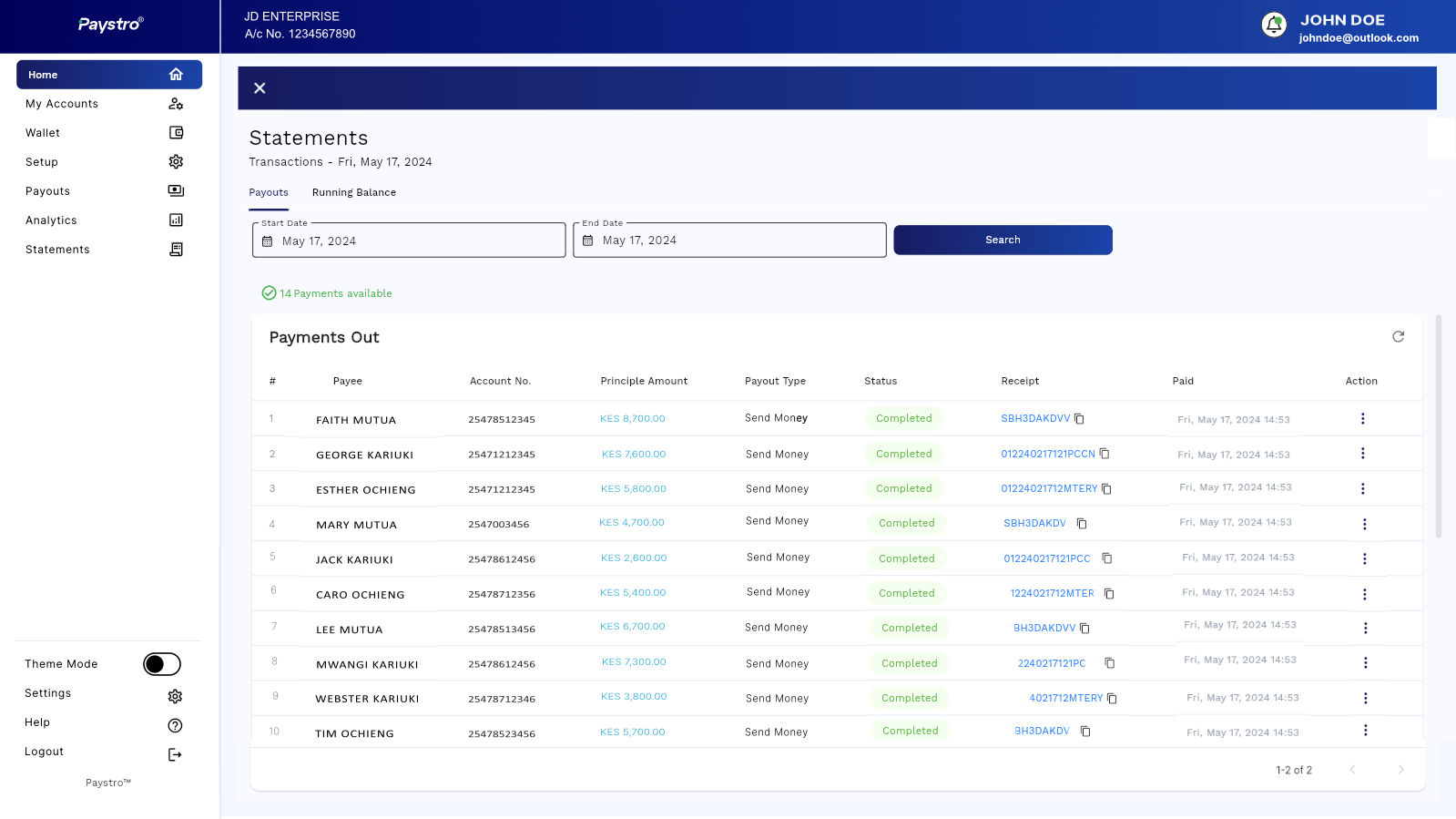 PAYSTRO App is available in Apple & Google Play stores, and is also available for Web